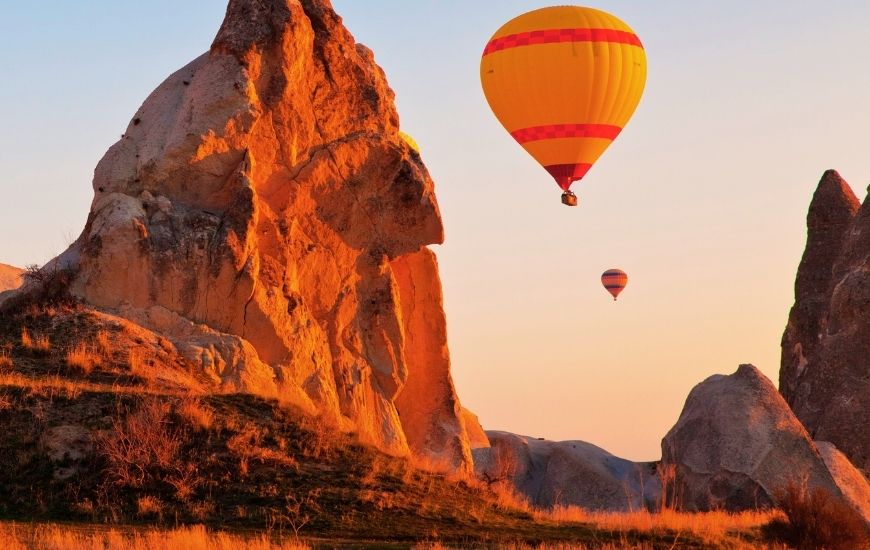 - Contempla el emblemático paseo en globo aerostático al amanecer en Capadocia, con vistas incomparables de las chimeneas de hadas y los valles: una experiencia inolvidable.